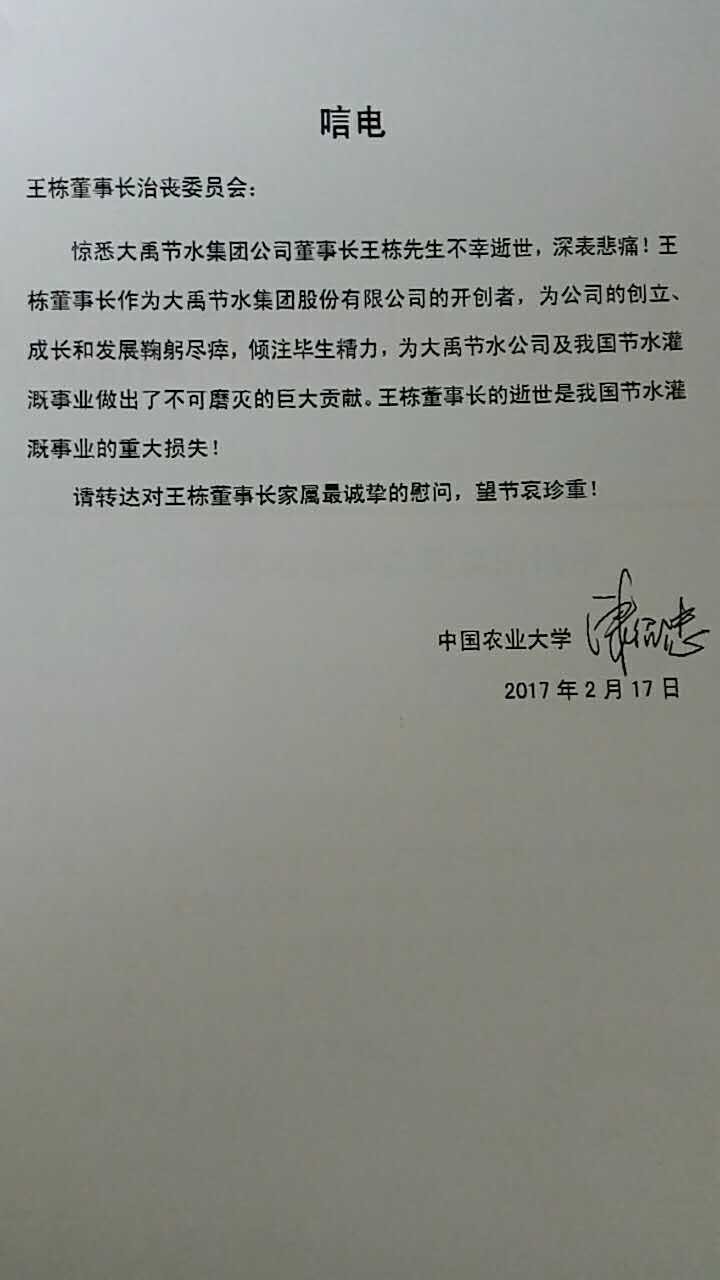 中国农业大学康绍忠院士唁电