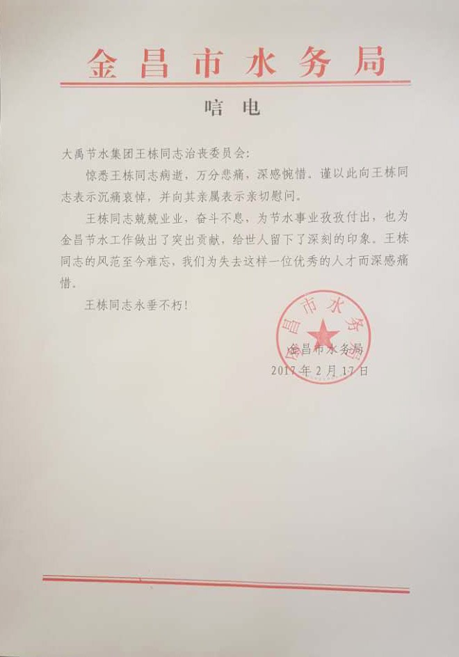 金昌市水务局唁电
