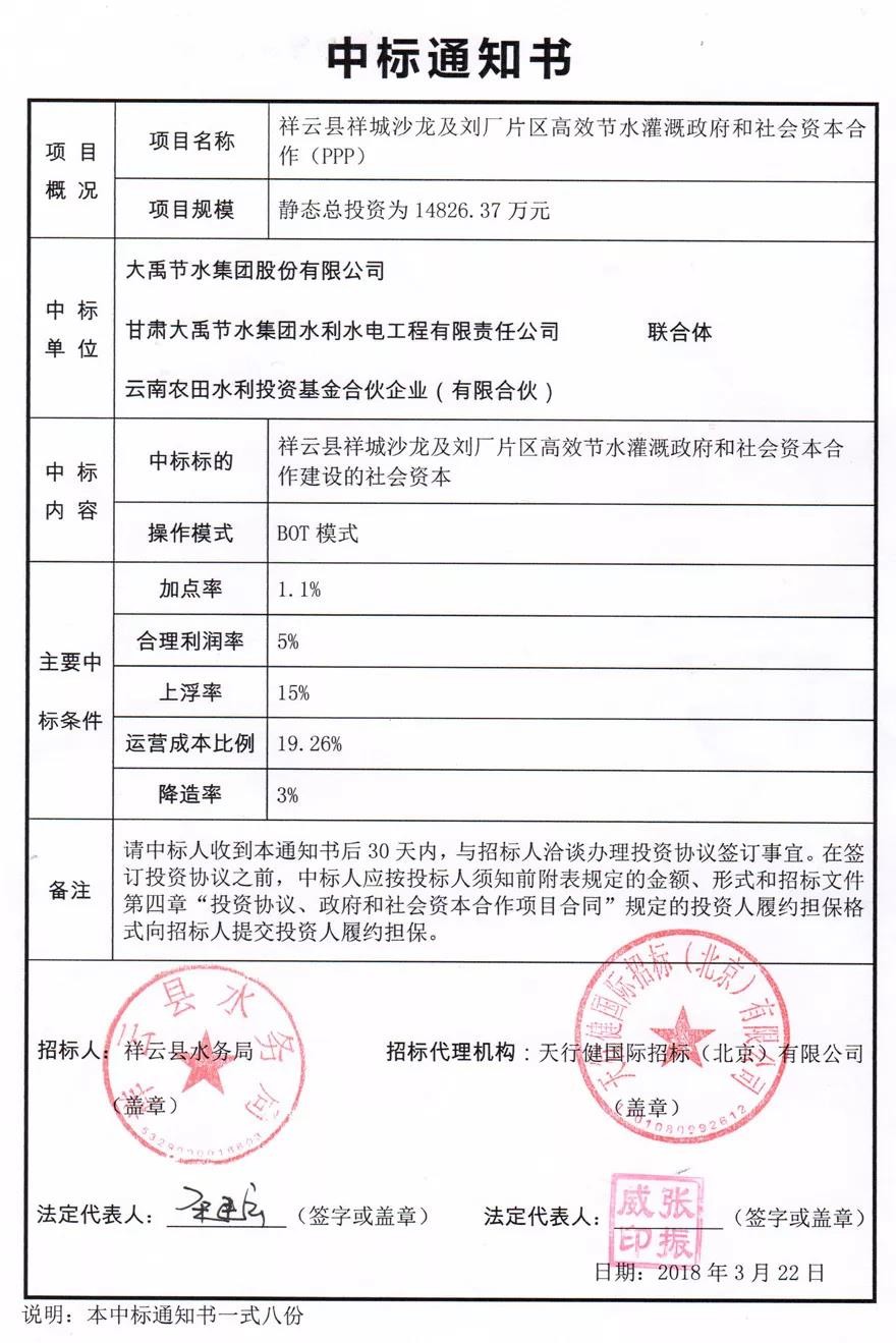近日,304am永利集团收到云南省大理州祥云县祥城沙龙及刘厂片区高效节水灌溉当局和社会本钱合作(PPP)项目中标通知书,成功成为项目中标社会本钱方。项目静态总投资为14,826.37万元,项目合作期为20.58年,其中建设期0.58年,运营期20年。项目位于祥云县祥城镇、沙龙镇及刘厂镇,计算执行高效节水灌溉面积5万亩,其中:祥城沙龙片区灌溉面积3.4万亩;刘厂片区灌溉面积1.6万亩。工程内容蕴含取水工程、输水工程、配水工程、田间工程及自动化工程。